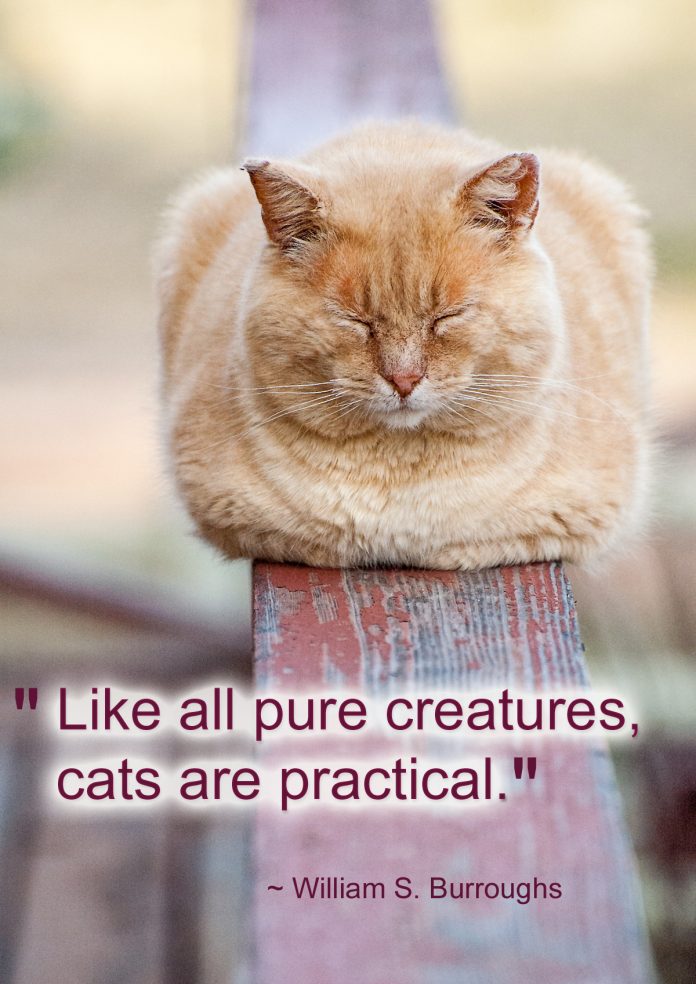Cats are Practical – William S. Burroughs “Like all pure creatures, cats are practical.” ~ William S. Burroughs Cat Quotes Facebook Twitter Linkedin Pinterest