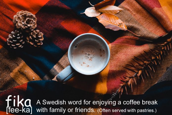 FIKA Fika [fee-ka] – A Swedish word for enjoying a coffee break with family or friends. (Often served with pastries.) Life Quotes Facebook Twitter Linkedin Pinterest